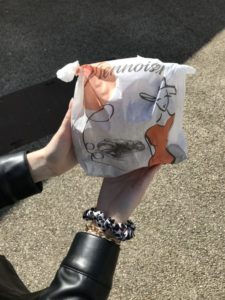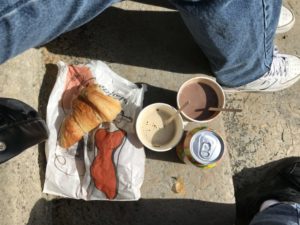Un rapide coup de fil et une escapade à la boulangerie plus tard, mon amie et moi étions aux terrasses du jet d’eau, en moins de temps qu’il ne le faut pour le dire. Comme l’effervescence d’une ville peut être agréable ! Le marché et les cafés à emporter faisaient fureur : la Place du Jet d’eau était bien animée. C’était à en oublier la crise.