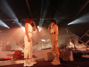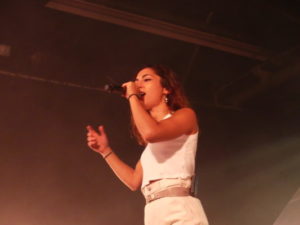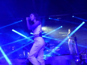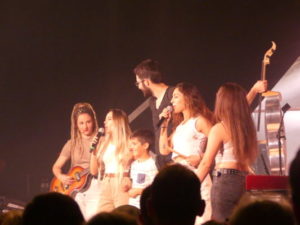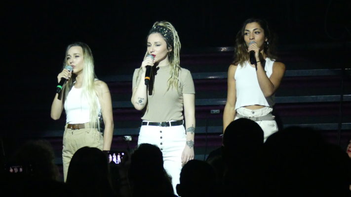 Après une première partie assurée avec brio par l’artiste mancelle Azuryte, le groupe L.E.J a fait son apparition dans une salle Oasis bien garnie. Les 900 spectateurs trépignaient d’impatience à l’idée de voir ou revoir le trio dionysien. Les trois jeunes femmes font leur entrée dans la fosse, dans le dos de l’assistance, avant de se lancer avec « Le Buzz », extrait de leur nouvel album (Poupées russes). Dans une scénographie soignée, Lucie, Elisa et Juliette enchaînent avec entrain des chansons aux influences multiples. L’auditoire vibrent aux sons de leur précédant disque (En attendant l’album) comme « La Dalle », « Hip-hop Mash Up » ou encore, le tube « Summer 2015 » et les nouveaux titres originaux sortis en 2018 comme « Acrobate » et « Le Verbe ».