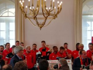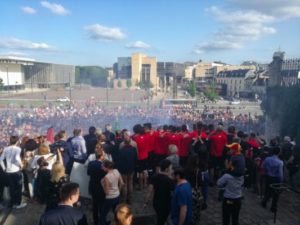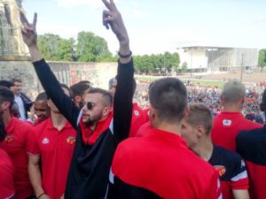 Lundi 3 juin, en fin d’après-midi, la formation Sang-et-Or s’est avait rendez-vous place du jet d’eau pour célébrer cette victoire devant une foule en liesse. Plusieurs centaines de personnes ont acclamé les joueurs, en particulier les buteurs Rémy Boissier et Mamadou Soro, le héros ayant qualifié l’équipe mancelle d’un retourné incroyable acrobatique dans les ultimes secondes.
