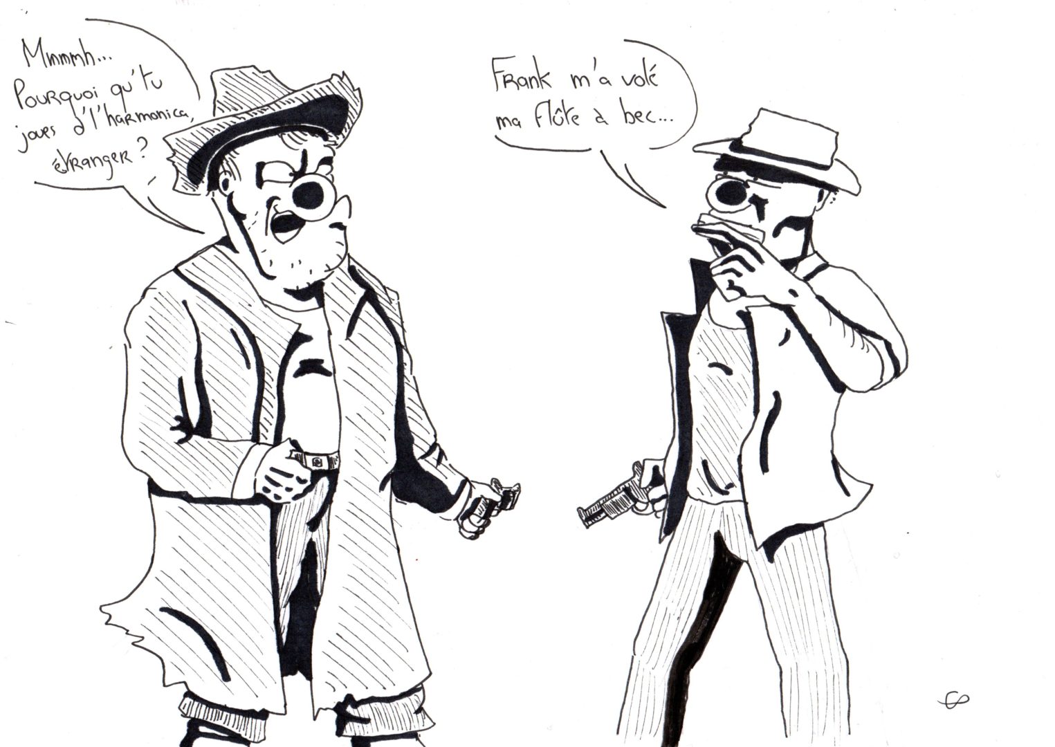 Une des forces de ce film réside dans le caractère énigmatique du personnage principal ; silencieux comme un spectre, ses mots sont rares et mordants, et son arrivée est toujours annoncée par l’harmonica dont il joue d’un air mystérieux et angoissant. En suivant cet homme sans nom vers un but inconnu, le spectateur fait également la rencontre d’autres personnages atypiques à la nature ambiguë, comme le chef bandit Cheyenne et Jill McBain, la belle veuve sans foi ni loi, ainsi que le terrifiant Frank, tueur froid et impitoyable que recherche l’Harmonica.