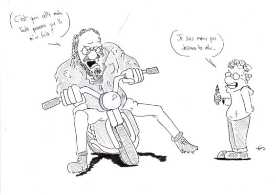 Conduisant déjà une petite moto, rêvant de longs périples sur les routes, une bimbo en combi moulante harnaché à son dos, ce personnage attachant peut être révoltant dans sa vulgarité qui trahit parfois son manque d’innocence, mais c’est toute la beauté de ce motard farouche dans le corps d’un gamin.