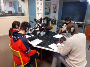 Pour l’émission de radio, je collabore avec Delphine Duchemin, responsable technique et pédagogique à Cartables FM, pour animer l’équipe et gérer le conducteur (plan) de l’émission.