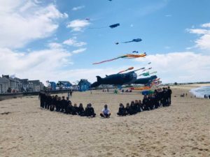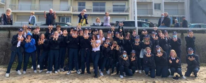 Photo de couverture : compagnie verte du centre SNU 44 sur la plage de La Turballe avec des civils.