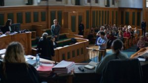 Déjà remarquée sur la Croisette avec ses films « Victoria » et Sibyl », la réalisatrice Justine Triet signe ce portrait très détaillé d’une famille, à travers un drame qui pousse la justice à analyser le moindre détail de la vie de cette famille. Co-écrit avec Arthur Harari, le scénario est bien rythmé, même si il faut s’accrocher pendant la première demi-heure de l’œuvre. Les séquences de procès sont immersives et nous font suivre habilement les plaidoiries et les interventions de l’accusée. La musique est aussi mise en avant et apporte une vraie atmosphère.
