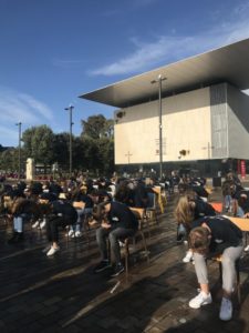 Parmi les danseurs figuraient la section Histoire des Arts, les élèves français du projet Erasmus, mais aussi, les cinq autres nationalités du dispositif (Allemande, Crétoise, Roumaine, Grecque et Italienne). « C’était beau et prenant. La régularité et la précision des gestes étaient émouvantes, voir troublantes. La musique colle parfaitement à cette chorégraphie », confiait Anissa, une spectatrice, à l’issue de la représentation.