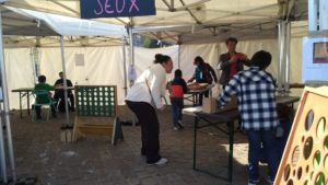 Quelques jours avant de célébrer ses 60 ans d’existence, le Planning Familial a pu présenté lors de cette journée son jeu Chronologia*. Le jeu retrace des faits marquants de notre histoire sur les droits des femmes. De l’autre côté de la place, les enfants se sont amusés avec des jeux en bois (galets, billard japonais…) mis à disposition par la ludothèque de Planet’Jeux. Des ateliers, comme de la peinture, un escape game, une exposition, constituaient par ailleurs la grande nouveauté de cette seconde édition.