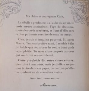 Etre une femme à l’aube du XXe siècle n’est pas quelque chose de facile, encore moins pour Cate qui doit s’occuper seule de ses deux jeunes sœurs depuis la mort de leur mère. Elle doit empêcher que leur plus grand secret soit révélé : les trois sœurs sont en réalité des sorcières. En fouillant dans les affaires de sa mère, Cate va être investie d’un fardeau plus grand encore : une prophétie annonce qu’une femme, issue d’une fratrie de trois sorcières, deviendra la plus puissante de toutes les sorcières et portera sur ses épaules le destin de toute la Nouvelle Angleterre. Et si cette sorcière était Cate ou l’une de ses sœurs ?