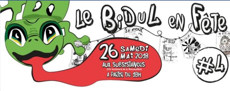 Pour financer la parution de ce fanzine, Les Arts Services organise depuis maintenant quatre ans une soirée de soutien aux Subsistances. Cette année, Le Bidul en fête invite BôNome Tétard et les Cancriés. Les chansons de ce quatuor sarthois évoquent les épreuves et les joies de l’amour du quotidien. Également à l’affiche, La Peste, groupe de post-punk et Danaïde, autre formation rock locale aux envolées électrisantes. Le plateau accueille notamment Wallack (Poitiers), combo rock massif tour à tour désertique et urbain et Crew2ball, groupe de hip-hop tourangeau. DJ Smac Fly offrira mix house-techno-transe pour le bouquet final.