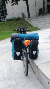 « Ce n’est jamais facile de partir avec le strict minimum surtout lorsqu’il faut prévoir pour trois semaines consécutives de voyage ! Il faut en effet penser à avoir un peu de nourriture d’avance (le riz et le couscous font l’affaire), aux différents vêtements en fonction de la météo, au réchaud, aux casseroles, aux outils pour les vélos…