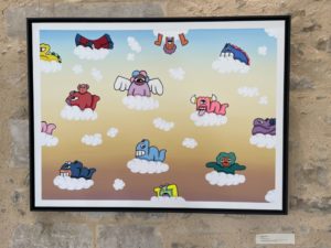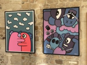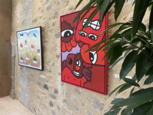 Son personnage YABU, créature imaginaire issue de son enfance, devient une entité à part entière que les visiteurs peuvent apercevoir tout au long de l’exposition. Dans ses toiles, il représente son univers avec de la peinture vinylique pour un rendu esthétique doux qui ajoute du sens à sa démarche artistique.